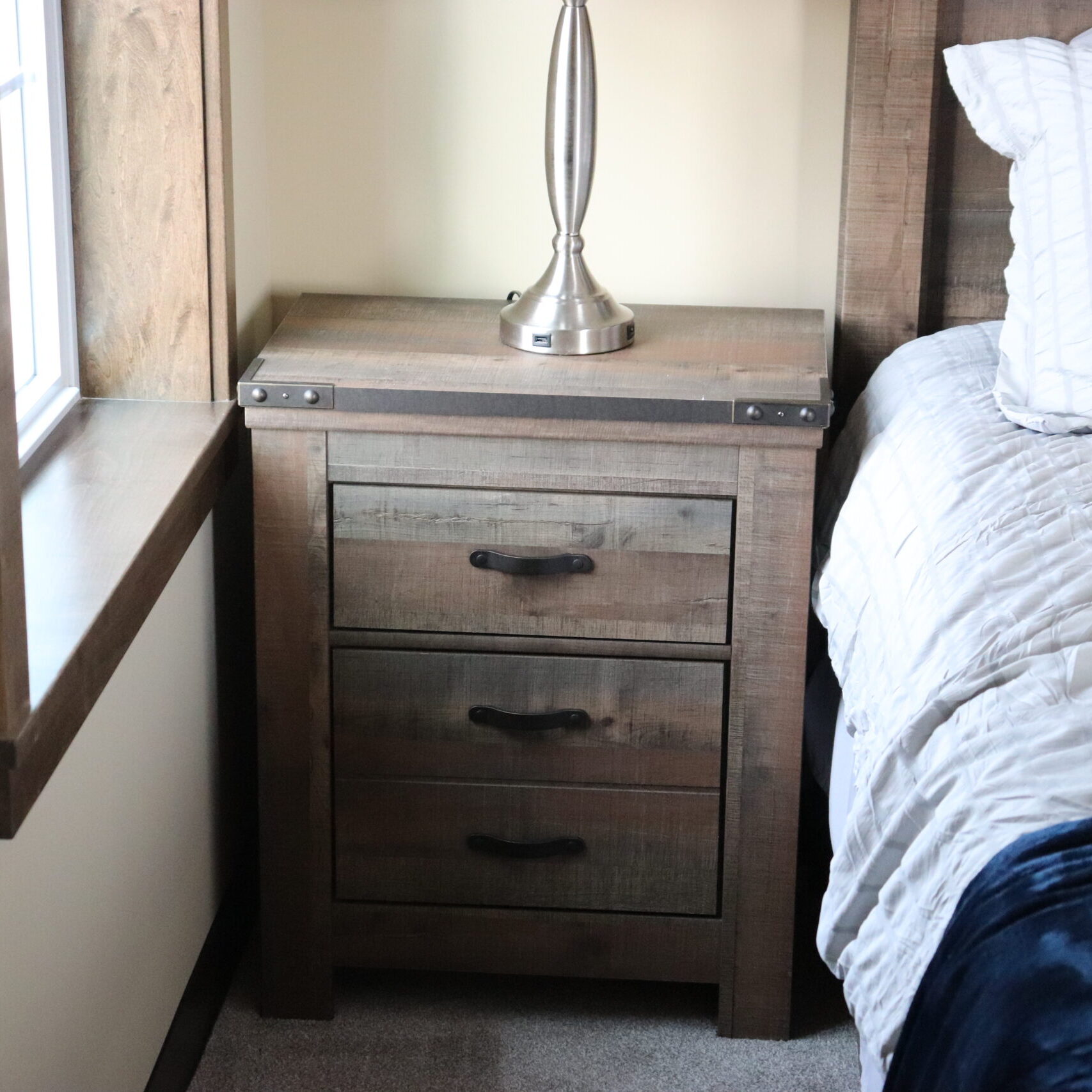 - Master bedroom, bunkroom, kitchen, living space, and bathroom